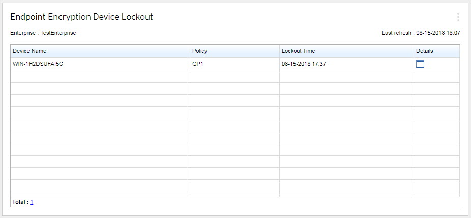 Click the details icon to view the Endpoint Encryption Device Lockout report. |