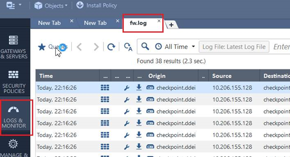 1. On Check Point SmartConsole, go to Logs & Monitor.