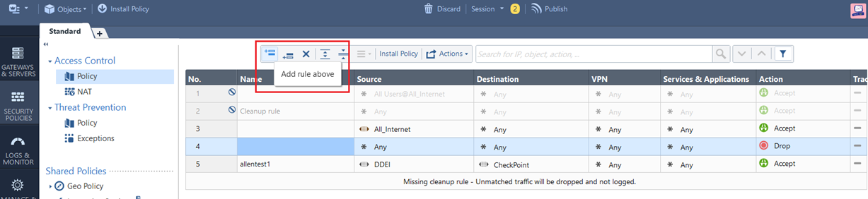1. On the SECURITY POLICIES tab, go to Access Control > Policy.