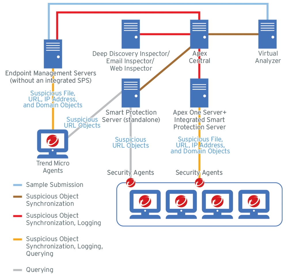 Apex Central further monitors other registered Trend Micro products through log analysis and comparison of detected files with the synchronized suspicious object lists.