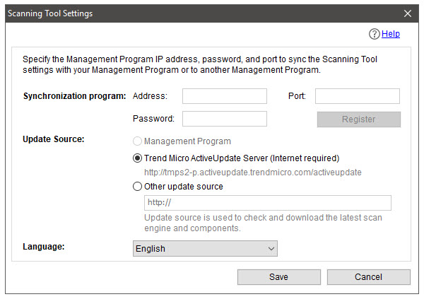 The Management Program settings are automatically disabled for Standalone Scanning Tool.