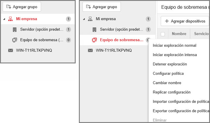 Inicia una exploración avanzada en todos los endpoints del grupo seleccionado para analizar y limpiar las amenazas que no se eliminan con la exploración normal. Nota: