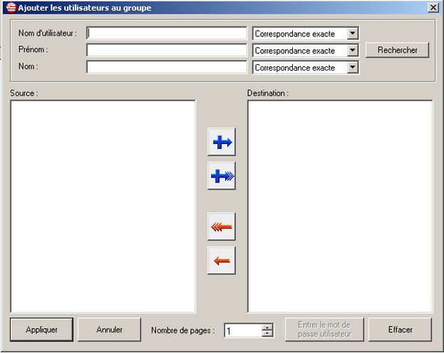 - Sélectionnez les utilisateurs dans la liste Source et cliquez sur la flèche bleue pour les ajouter.
