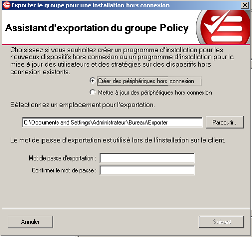 Les groupes hors ligne autorisent les agents qui n'ont pas besoin de communiquer avec PolicyServer, ou qui ne peuvent pas le faire, à obtenir des stratégies mises à jour. Les fichiers d'installation de l'agent Endpoint Encryption doivent être disponibles sur le serveur sur lequel PolicyServer est installé.