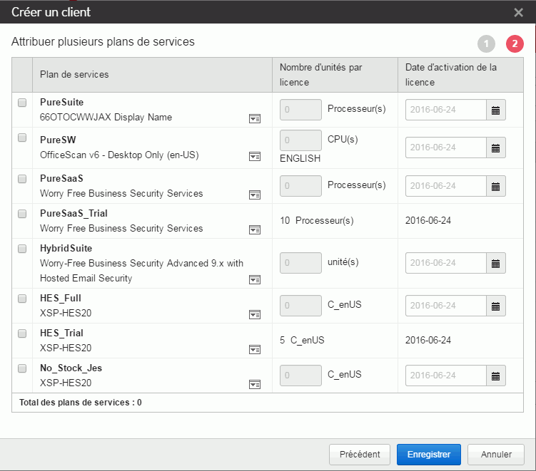 - Sélectionnez au moins un plan de services à attribuer au client.