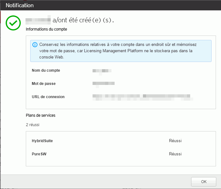 Un message de confirmation de la création du compte apparaît à l'écran.